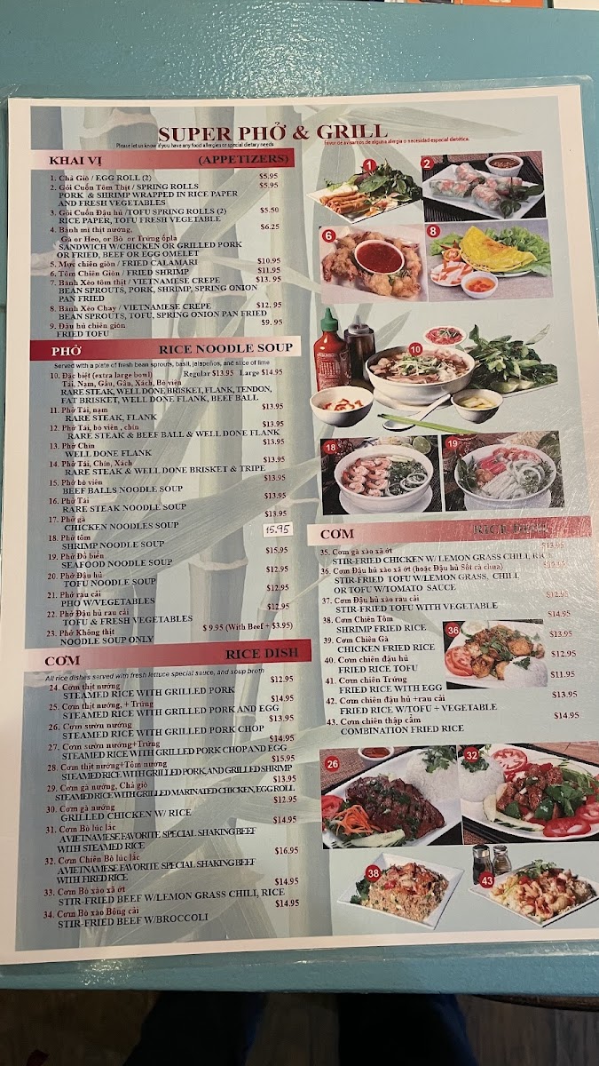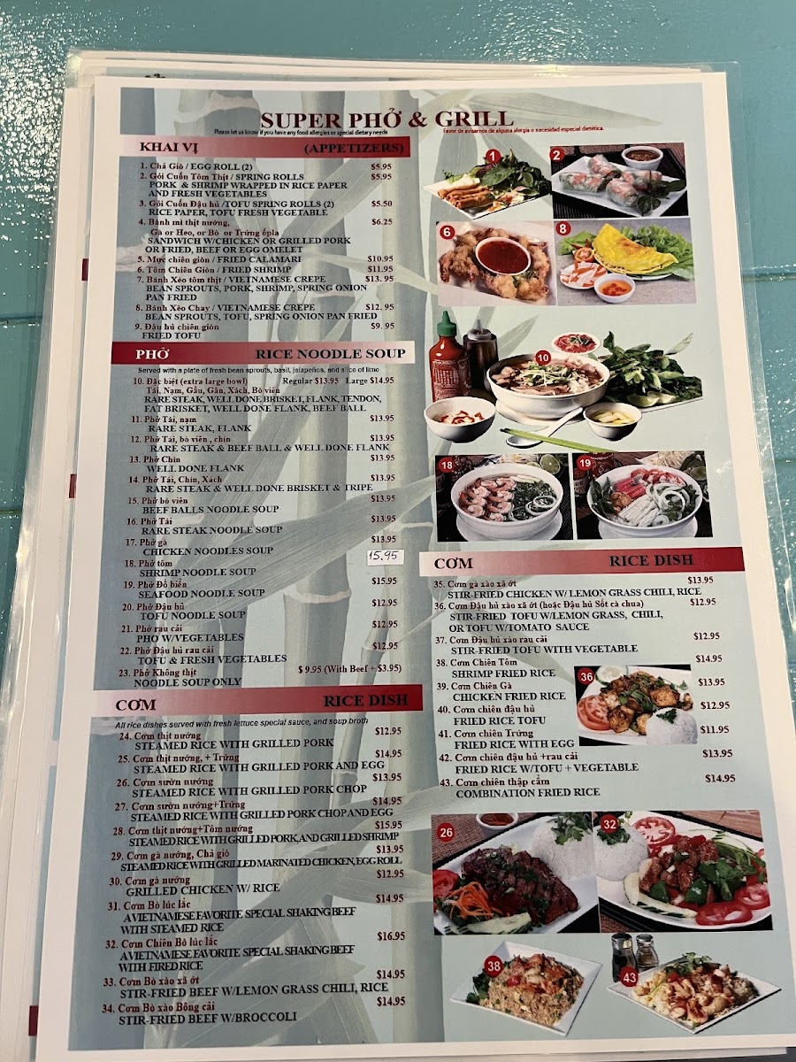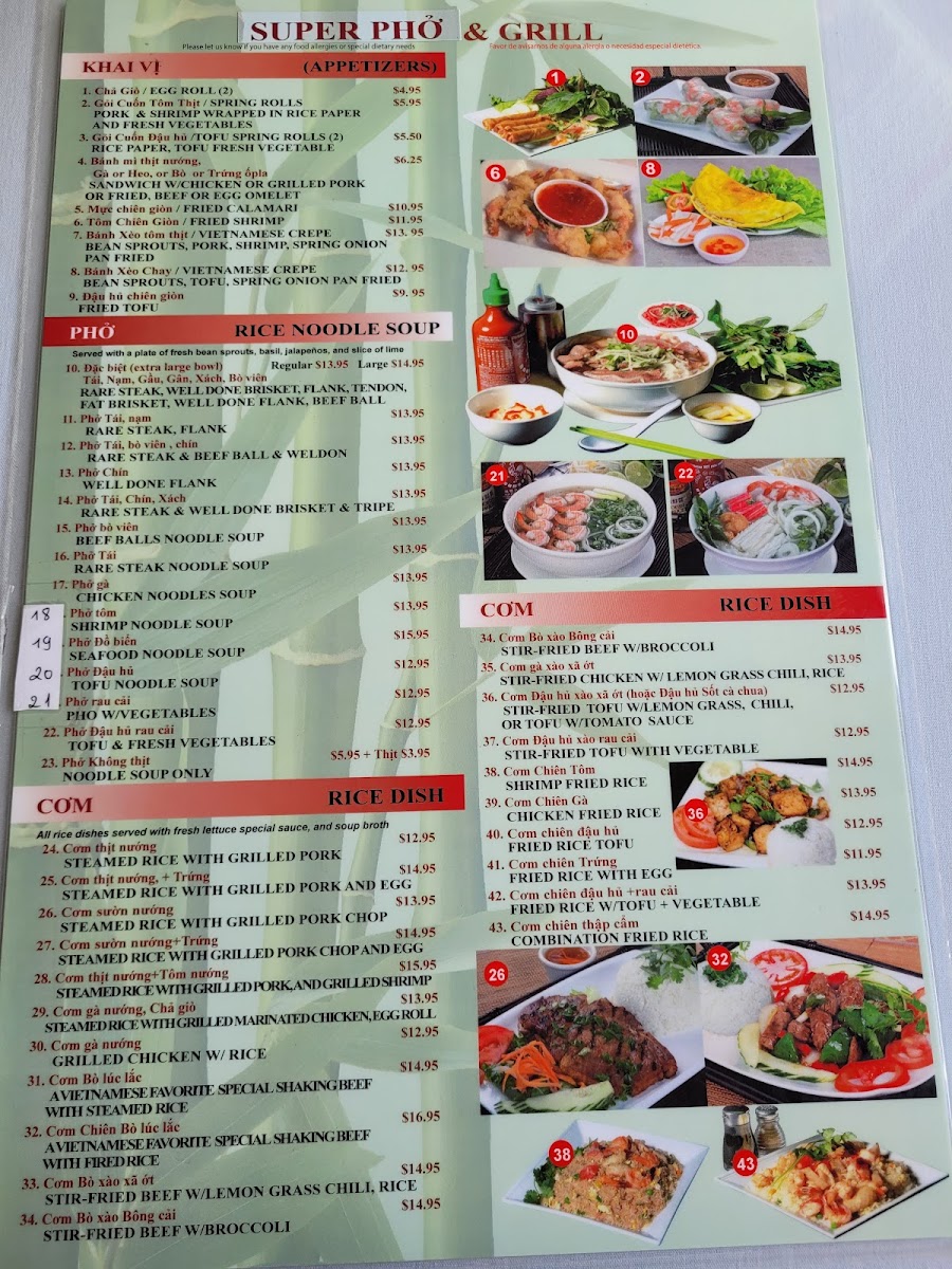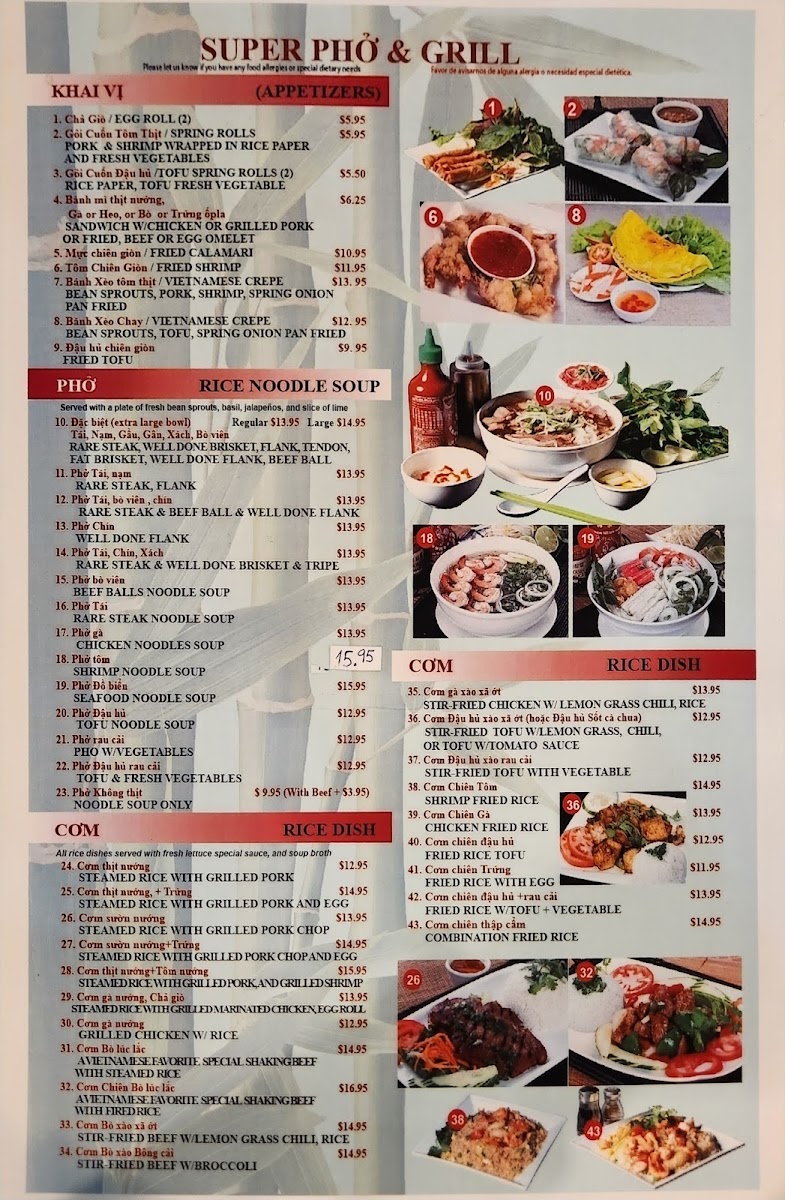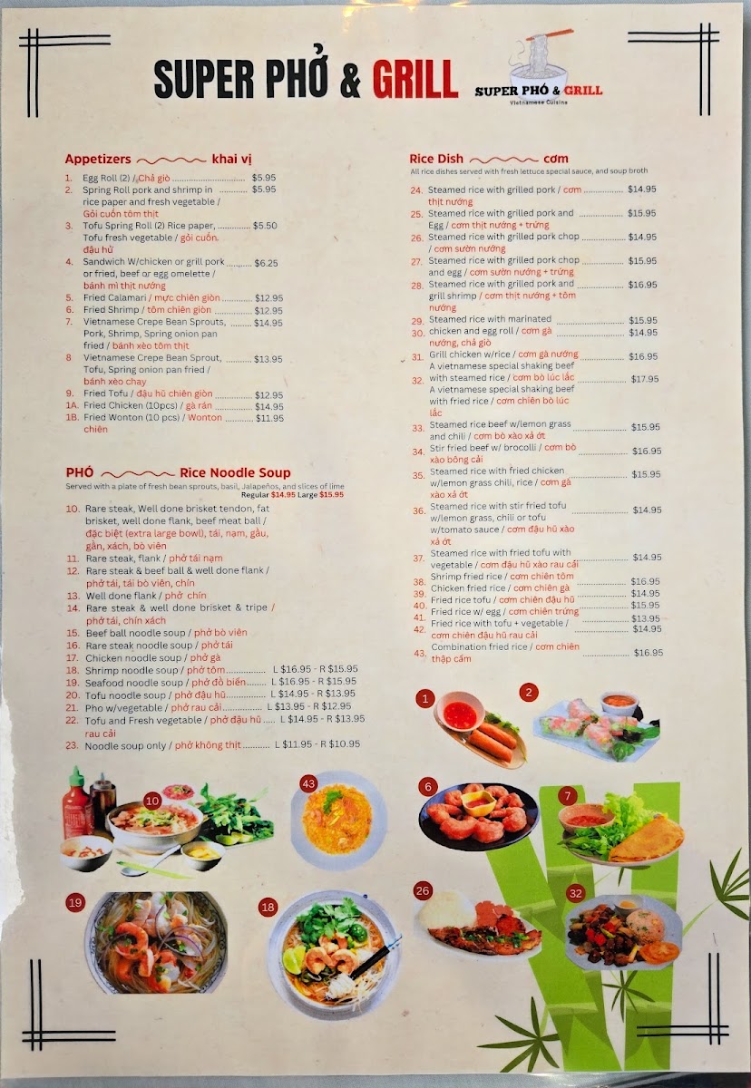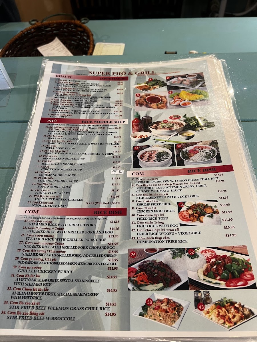 Super Pho and Grill Menu